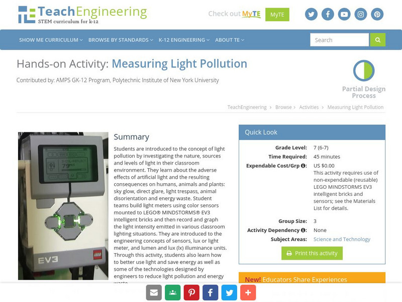 Students are introduced to the concept of light pollution by investigating the nature, sources and levels of light in their classroom environment. They learn about the adverse effects of artificial light and the resulting consequences on...