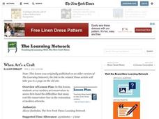 The role of crafts in Canadian culture is the focus for high schoolers. In this resource, learners create pieces of artwork that they feel reflect the role of crafts in Canada. Along with viewing the works of Robert Harris, each pupil...