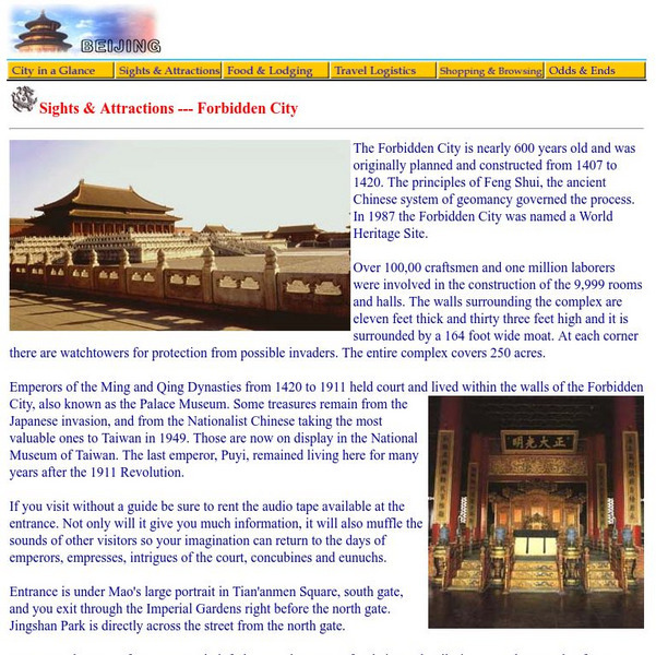 This site works as a visitors' guide for the Forbidden City, but it also provides history and statistics.