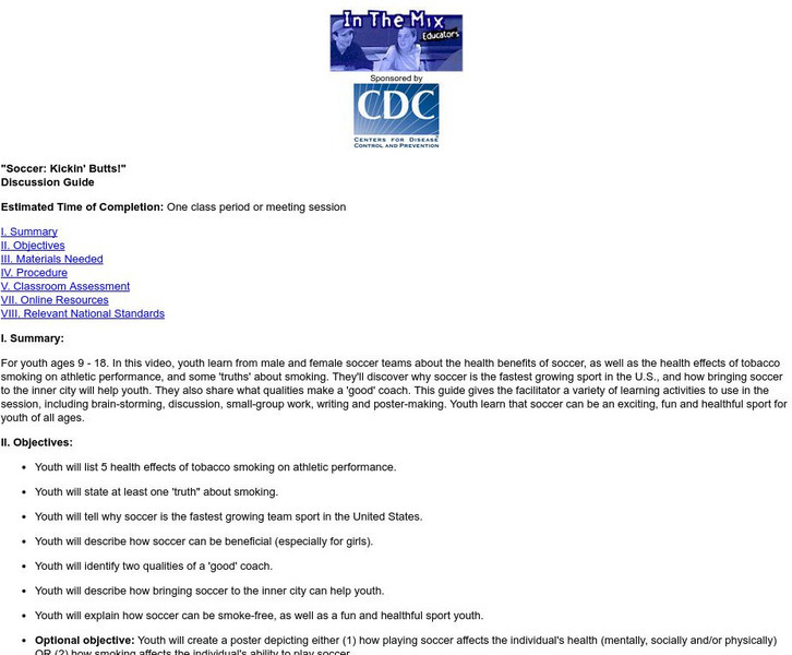 Learn the health benefits of soccer as well as the effects of tobacco smoking on athletic performance. Consider and discuss statistics about health, sports and making a difference for inner-city youth.