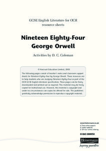 The depth of Nineteen Eighty Four is in the details. Encourage a close reading of Orwell's dystopian classic with resource sheets that focus attention on the author's stylistic choices that lead to the betrayals that make Big Brother's...