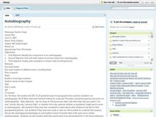 In this unique lesson on autobiographical writing, students compare and contrast three types of writing: narrative, poetry and newspaper. Students prepare to produce a short autobiographical writing based on the framework of one of the...