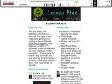 Young scholars construct and test balloon rockets and a model rocket. In this rocket science lesson, students use an inquiry-based method to master balloon rockets and have a shoot-off with the goal of attaining the highest altitude....