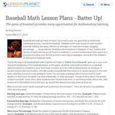 Baseball Math Lesson Plans - Batter Up!