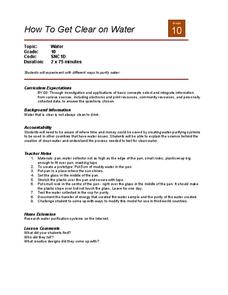 Tenth graders investigate different systems that are used to purify water. They have class discussion about the benefits and challenges that different countries would face with the implementation of the systems. Students explain the...