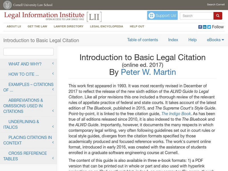 Cornell University: Law School: Introduction to Basic Legal Citation