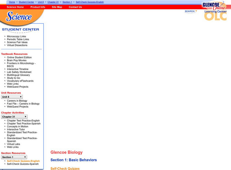 Glencoe Biology: Basic Behaviors: Self Check Quiz