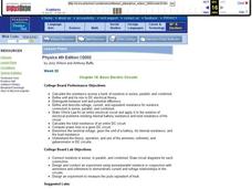 Students calculate the resistance across a bank of resistors in a series, parallel and combined circuit. Using new vocabulary words, they define and describe them in a scientific manner. After stating Ohm's Law, they solve electrical...