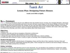 Students discuss the changes we face and what kind of future house designs students can imagine. They create a floor plan, make an architectural drawing, and write a short description about their future house.
