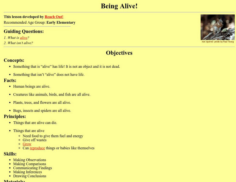 This site provides a basic lesson plan that classifies objects as alive or not alive. Good for early elementary.