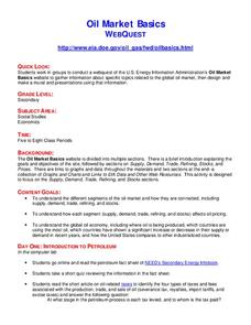 Students explore the global oil market through a web-quest. In this oil market lesson plan, students conduct a web-quest to gather information related to the global oil market then design and make a mural.
