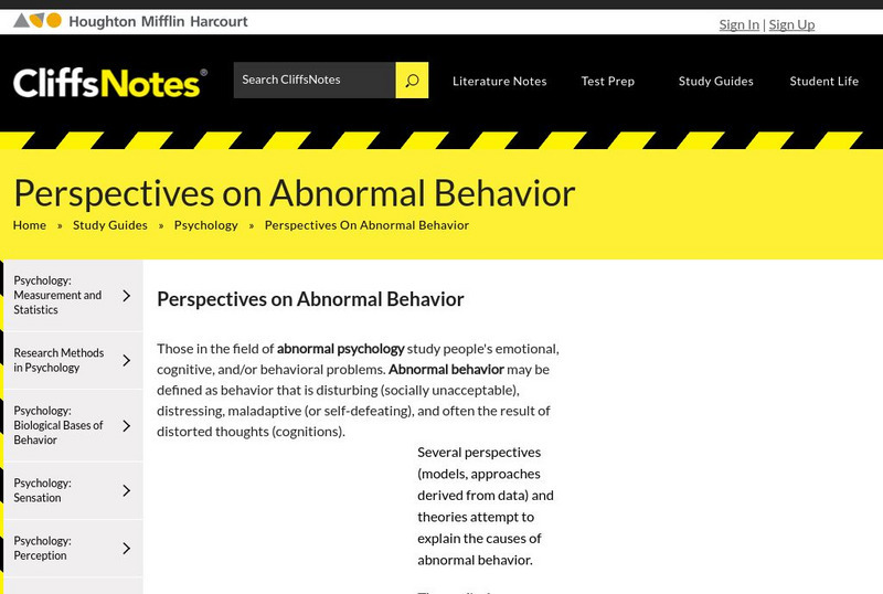 Houghton Mifflin Harcourt: Cliffs Notes: Perspectives on Abnormal Behavior