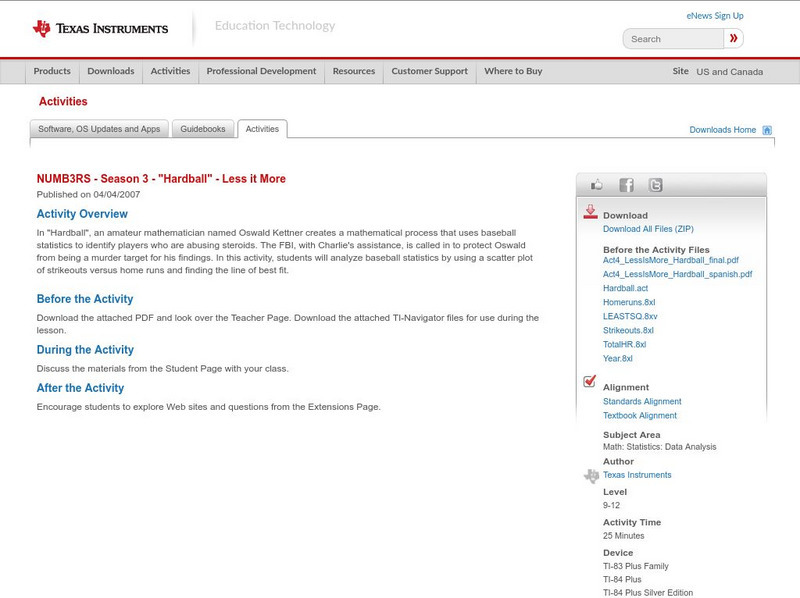 Based off of the hit television show NUMB3RS, this two-part lesson begins by having students try to find the line of best fit for a given set of data (strike outs vs. home runs). The second part of the lesson shows how least squares...