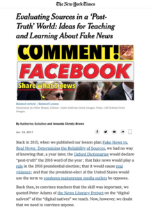 Evaluating Sources in a ‘Post-Truth’ World: Ideas for Teaching and Learning about Fake News