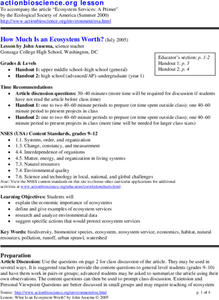 Students explain and discuss the importance of ecosystems. They analyze the natural resources in the environment. They also suggest actions that would protect ecosystems.