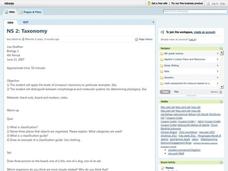High schoolers review the various categories in taxonomy. In groups, they identify the characteristics of each kingdom and compare and contrast them. They define the terms binomial nomenclature and morphology. To end the lesson, they...