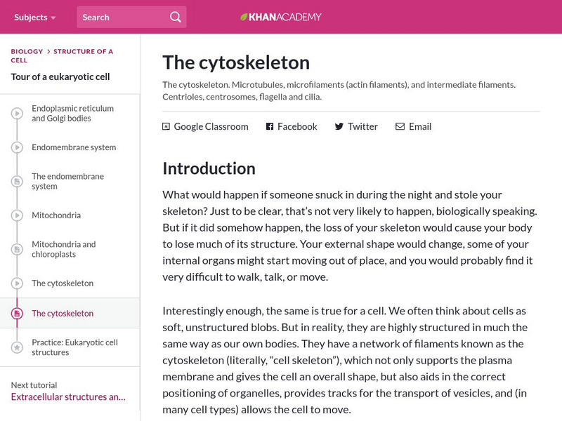 In this interactive tutorial you will discover that the cytoskeleton is both a muscle and a skeleton, and is responsible for cell movement, cytokinesis, and the organization of the organelles within the cell.