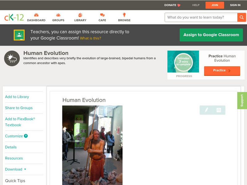 [Free Registration/Login may be required to access all resource tools.] The briefest overview of human evolution.