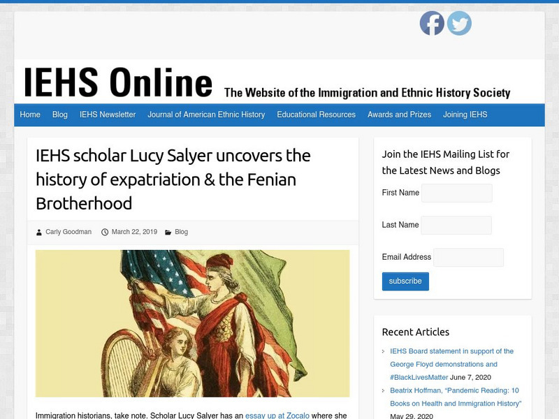 Iehs: Lucy Salyer Uncovers the History of Expatriation & the Fenian Brotherhood