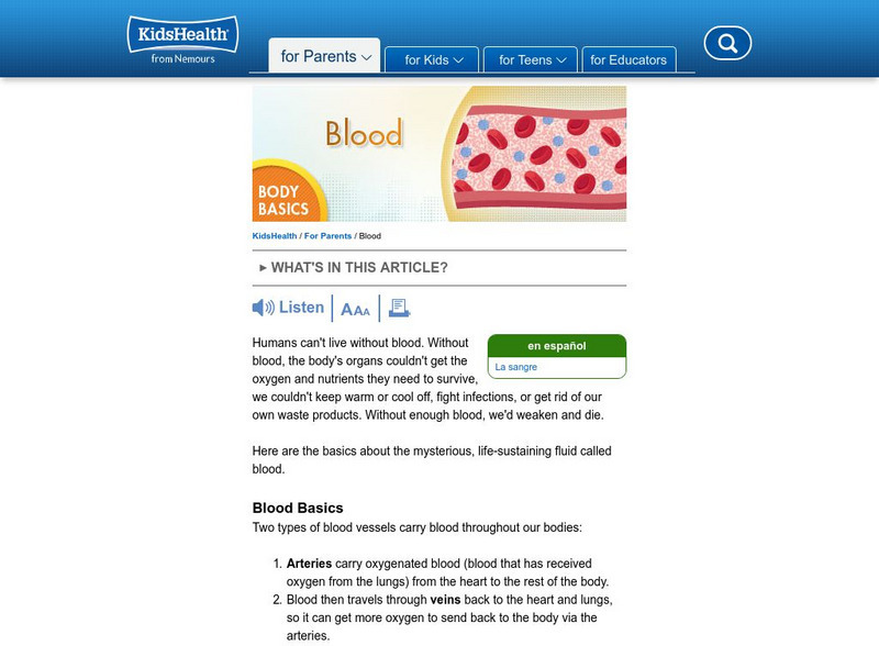 Kids Health: A Body Basics Article: Blood