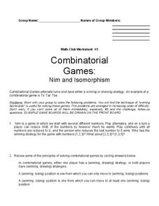 In this combinatorial games instructional activity, students play math games titled Nim and Isomorphism. Students read 5 sets of directions.