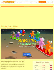 Float across the Martian landscape. Using an online game, learners participate in teams to propel their hoverboards in a race across the surface of Mars. By correctly evaluating a numerical expression involving parentheses, individuals...
