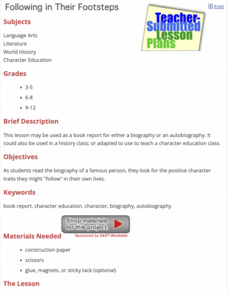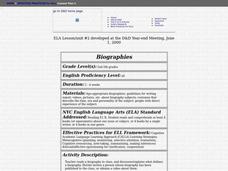 Young scholars study biographies as a nonfiction genre while examining a variety of examples. Next, they access and complete an online tutorial about biographies. They choose one person that interests them to conduct further research...