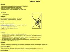 Learners create spider webs. In this spider webs lesson, students research various types of spider webs then write a report about a spider of their choice. Learners also make their own web similar to an orb spider.