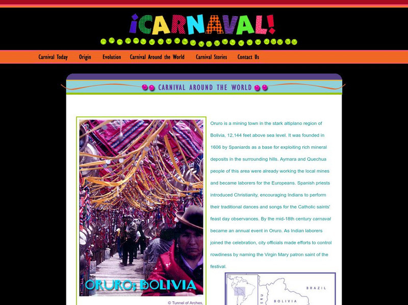 From the exhibit "Carnaval Around the World" at the Museum of International Folk Art, we have a feature page on the celebration as it occurs in Oruro, Bolivia. With a description, photos, map and audio clip this is a nice glimpse into...