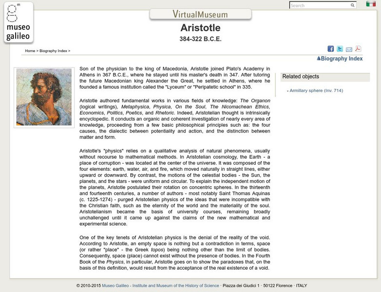 Museo Galileo: Aristotle 384 322 b.c.e.