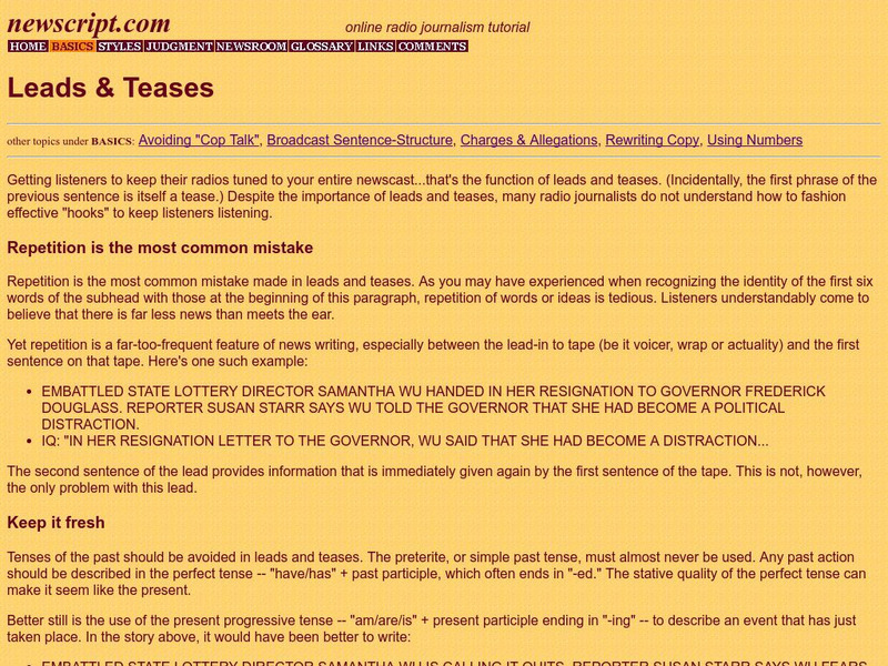 This is a fabulous site for learning all about writing news for the radio. Lots of links and great tips!