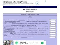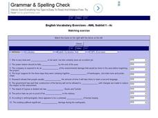 In this online interactive English vocabulary skills instructional activity, students answer 10 matching questions which require them to fill in the blanks in 10 sentences. Students may submit their answers to be scored.