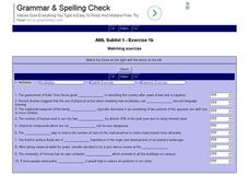 In this online interactive English vocabulary skills worksheet, high schoolers answer 10 matching questions which require them to fill in the blanks in 10 sentences. Students may submit their answers to be scored.
