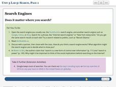 Which search engine is best? The last lab in a unit of five leads the class to investigate search engines. Working in groups, individuals read and discuss articles related to searching the Internet. Pupils develop suggestions that...