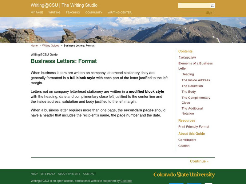 This user-friendly site for teachers and students provides a business letter format.