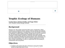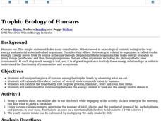 students analyze the place of humans among the tropic levels by observing what we eat. They calculate the caloric content of several foods commonly eaten by humans and calculate the total energy cost to grow, process, transport, store...