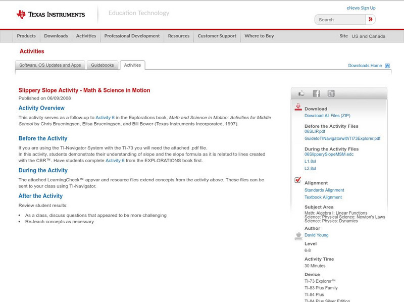 Texas Instruments: Slippery Slope Activity: Math & Science in Motion