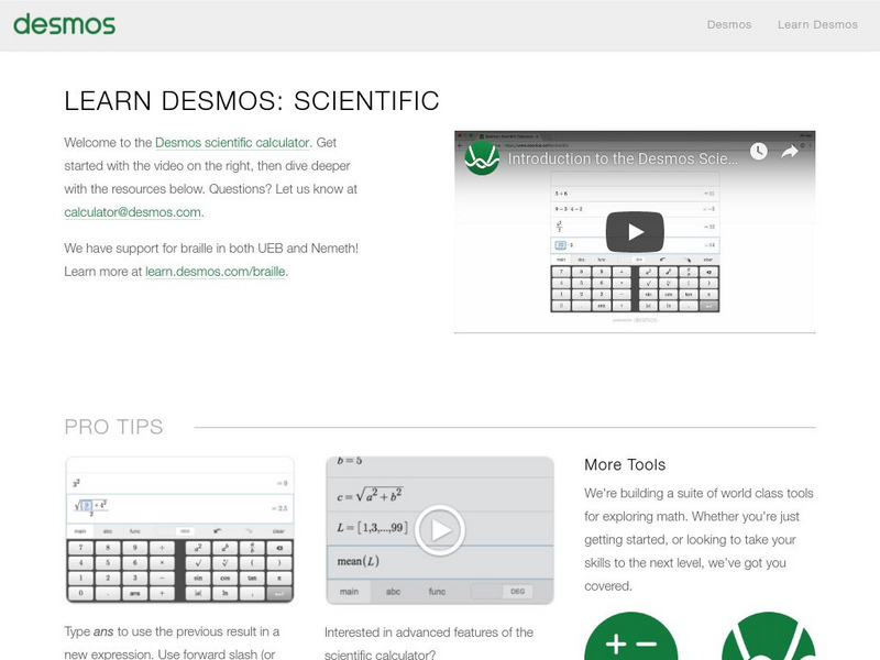 Learn how to use the Desmos scientific calculator. Watch a video demonstration and review pro tips to understand unique features and shortcuts to use with this calculator.