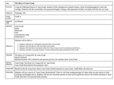 Sixth graders explore journal writing. In this writing lesson, 6th graders use the published diaries of Anne Frank and discuss the entries in her journal. Students write in their own journal for a week and create a one page summary on...