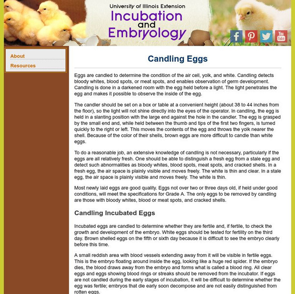 Directions on how to make a device to candle eggs, or check on the progress of the chicken embryo. Links to numerous incubation and embryology resources.