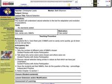Students comprehend that natural selectionis the tool for adaptation and evolution of populations. They pick three M&M's and no candy corns. Students tally the number of different color M&M's chosen. They discuss why colors...