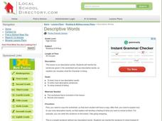 Learners use descriptive words in writing. In this descriptive words lesson plan, students learn to show instead of tell. Learners enter into a discussion of adjectives and adverbs, then add descriptive words to sentences to make vivid...