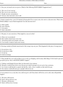 In this economics worksheet, 3rd graders answer questions about crops, natural resources, prices of items, and more. Students complete 20 multiple choice questions.
