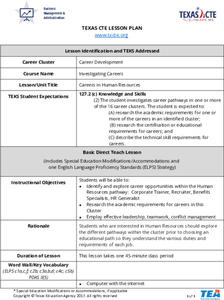 Students complete a self-analysis exercise and choose a career to research based on the results. Students research their career using various resources including interview and internet research. They use the information gathered to...