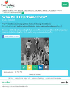 Fifth graders brainstorm a list of characteristics people have when they are happy with their career. In groups, they review their material from the previous lesson and share their information with the class in the form of presentations....