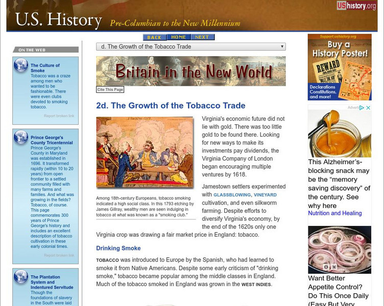 U.s. History: Britain in the New World: The Growth of the Tobacco Trade