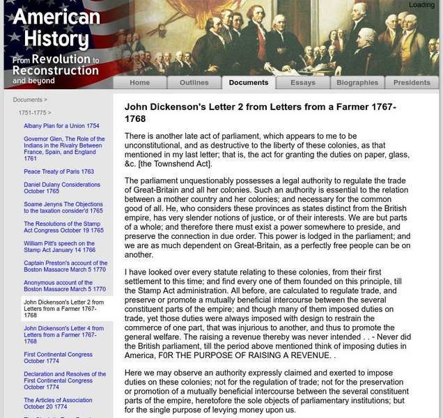 American History: Documents: John Dickenson's Letter 2 From a Farmer 1767 1768