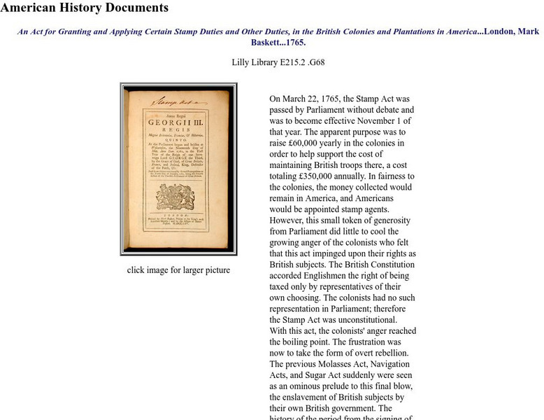 From the American History Documents series, view the original document and read about the 1765 tax that ignited the American Revolution.