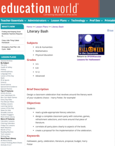 Students create a Halloween party or event based on a piece of literature they're reading during the season. This allows the students to plan a celebration and discuss a unique title for their themed celebration along with theme-related...