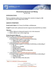 Learners become familiar with coal as an energy source and how it is mined. In this coal lesson, students research the effects of coal mining on the environment. Learners discuss the various problems associated with coal mining....